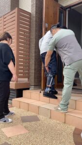 転倒予防も踏まえ、階段昇降の練習に、ご家族も参加していただきました。